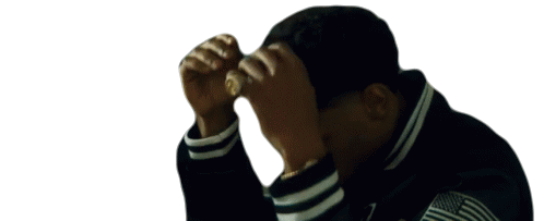 A Boogie Wit Da Hoodie appears sad and stressed, holding his head and then clasping his hands while looking down.