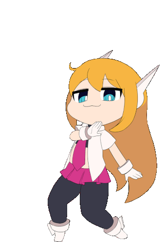 Saffron Smug, a cartoon girl with long orange hair, dances with a confident expression in this animated sticker.