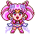 Animated pixel art sticker of Chibiusa, also known as Sailor Chibi Moon, with pink hair and wings.