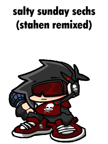 Salty, a character from Friday Night Funkin', transforms in this animated sticker, featuring the 'Salty Sunday Sechs (Stahen Remixed)' version.
