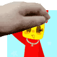 Sammy, the white blob-like character from 'Sammy Steal A Brainrot Rot', receives a gentle headpat from a cartoon hand.