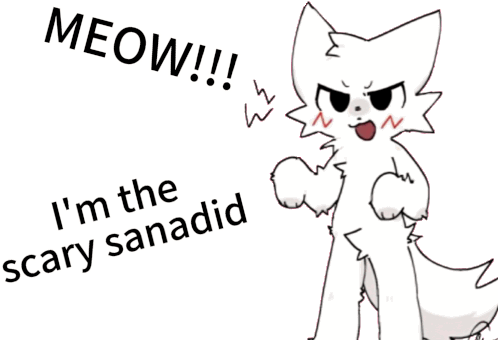 a drawing of a white cat with the words meow i 'm the sanadd below it