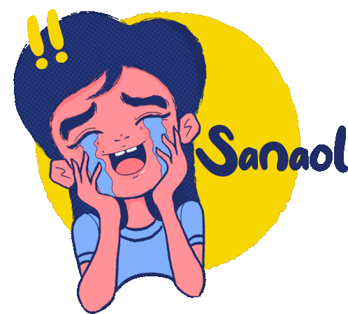 A cartoon character with a human face kneels with clasped hands, expressing the Filipino phrase 'Sanaol Yey' for shared happiness.