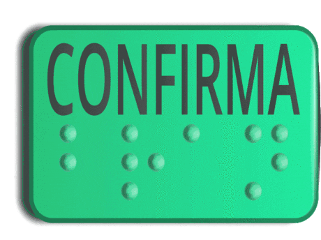 A green 'CONFIRMA' button sticker, featuring Sandra Zen and Bilac, related to voting and elections.