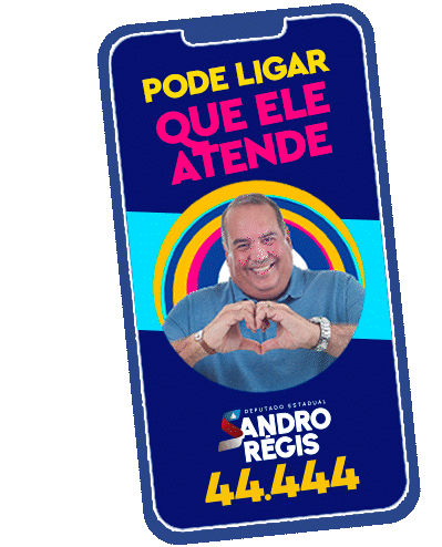 Sandro Regis, the State Deputy, encourages calls with a heart gesture, promising to answer. Features his campaign number 44.444.