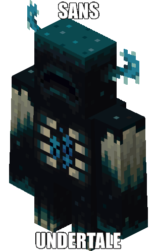 A Minecraft Warden character with 'SANS' and 'UNDERTALE' text, creating a popular gaming crossover meme.