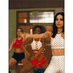 Sarah Fox from My Babysitters A Vampire, played by Vanessa Morgan, smiles and speaks while wearing a hat and denim jacket.