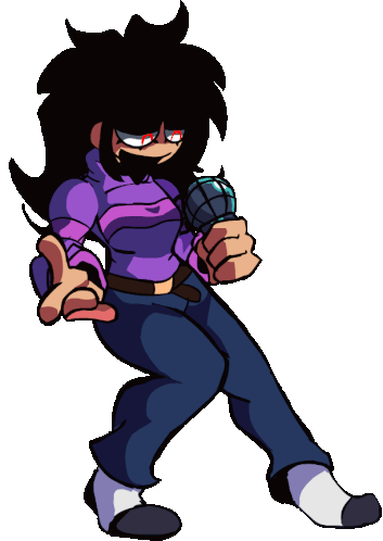Animated sticker of Sarah Henderson, a character from FNF, holding a microphone and pointing forward.