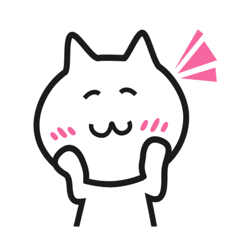 A cute cartoon cat character with closed eyes and a content, warm smile, showing satisfaction and happiness.