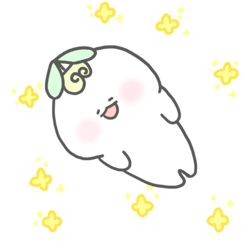 A cute, pear-shaped character with rosy cheeks and a warm, satisfied smile, surrounded by sparkling stars.