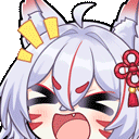 Satsuki Mei, the adorable fox girl, laughs with joy, showing her playful and energetic personality.