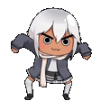 Savi Gremlin, the energetic cartoon character with white hair and a red scarf, is shown dancing with enthusiasm.
