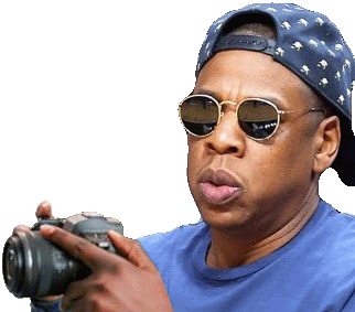 a man wearing sunglasses and a baseball cap is pointing at a camera .