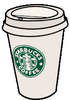 A charming animated sticker featuring a classic Starbucks coffee cup with its iconic green logo and straw.