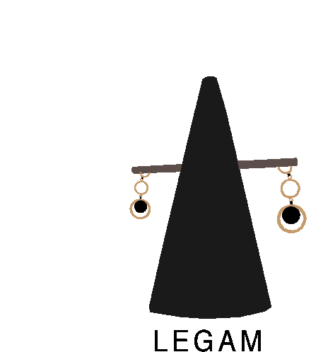 Animated sticker featuring a black conical scale with golden rings and black spheres, balancing a wooden bar, with 'LEGAM' text.