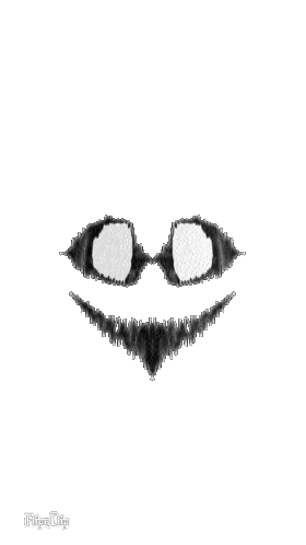 An animated black and white drawing of a weird, smiling face with glasses, subtly distorting to create an unsettling effect.
