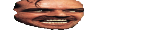 Close-up of a man's pixelated face with a mustache, grinning unsettlingly and looking to the side.