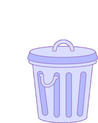 A cute, skeptical character with headphones pops out of a pastel purple trashcan, looking around before disappearing back inside.