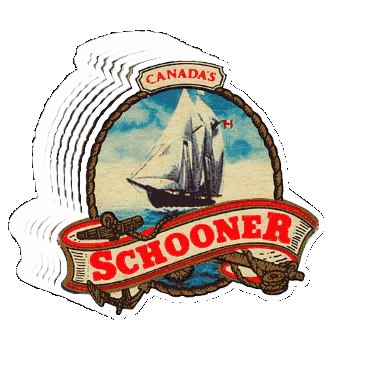 Animated sticker featuring Canada's Schooner beer logo with a classic schooner ship sailing on the water.