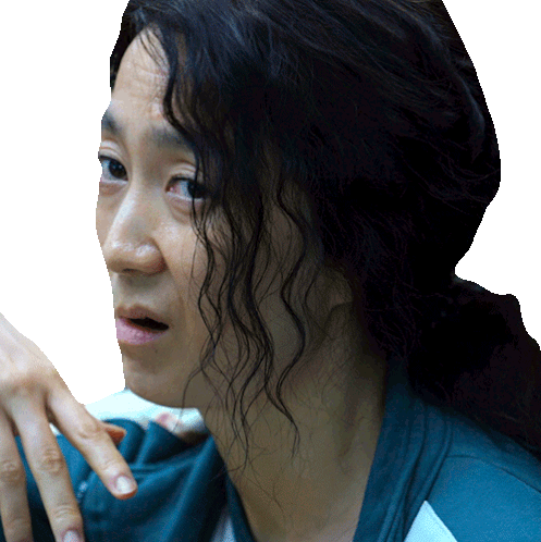 Han Mi-nyeo from Squid Game scoffs with a sneering expression, showing her characteristic attitude.