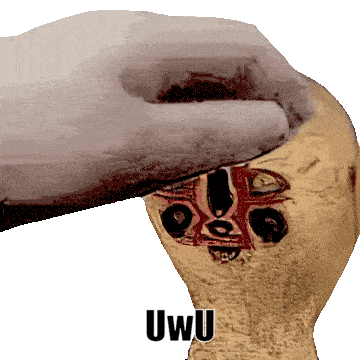 A hand gently touches a drawing with the word 'uwu' written on it, creating a cute and playful moment.