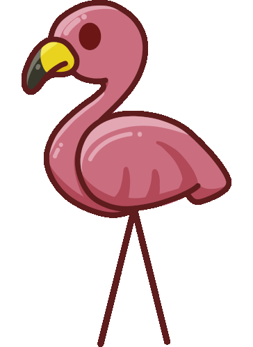 a pink flamingo with a yellow beak is standing on a single leg