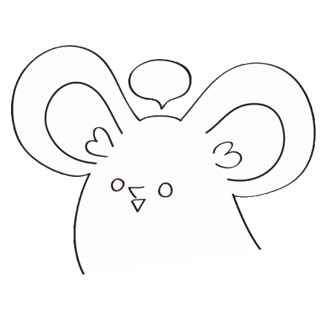 A simple line drawing of a cartoon creature with large ears and a small thought bubble above its head.