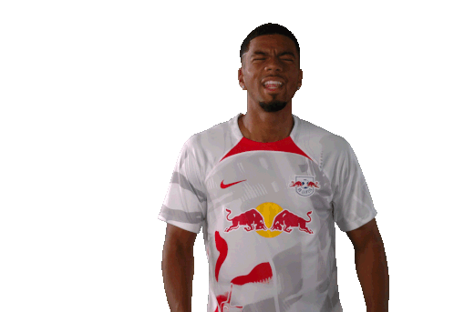 Benjamin Henrichs, a footballer for RB Leipzig, screams and raises his arms in an excited, thrilled celebration.