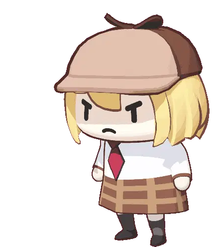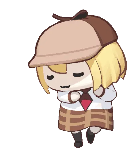 Seafoamboy's Smol Ame, a cute chibi character in a cap and school uniform, stands and sways gently, perfect for a subtle reaction.