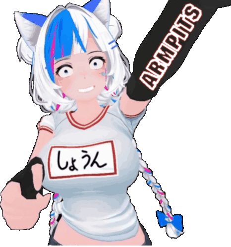 A girl with cat ears and an 'armpits' shirt holds up her arm, featuring Sean Vr in a chat.