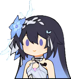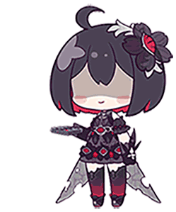 Chibi Seele from Honkai Impact, dressed in her signature dark outfit with a red flower, gesturing with a gentle expression.