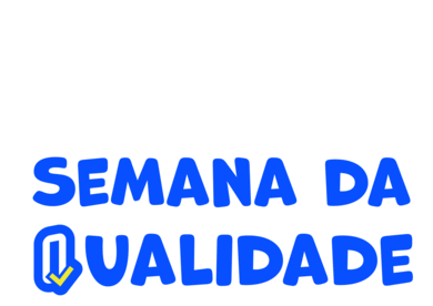 Animated sticker displaying 'Semana Da Qualidade' with a checkmark, celebrating quality week.