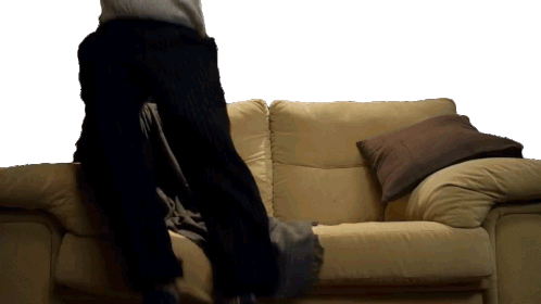 Belerofón se deja caer en el sofá, listo para sentarse y relajarse, quizás para ver la televisión.