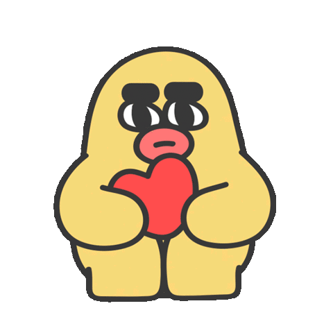 A sad yellow blob character expresses heartbreak by tearing apart a red heart, symbolizing a painful separation or breakup.