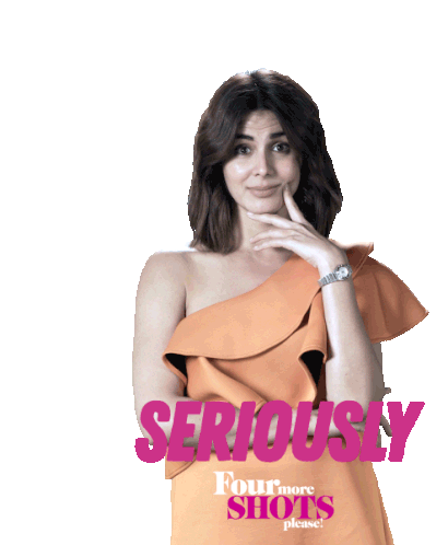 Kriti from Four More Shots Please reacts with a skeptical 'Seriously?' expression, hand on chin, with text 'SERIOUS!'.