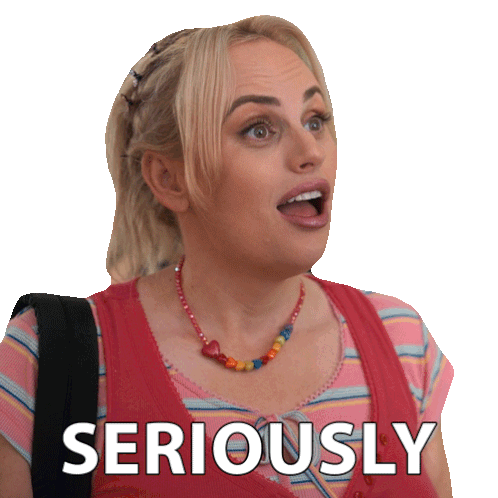 Stephanie Conway, played by Rebel Wilson, looks surprised and asks 'Seriously?' in this reaction sticker.