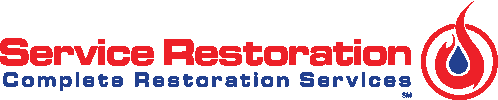 a logo for service restoration complete restoration services with a drop of water