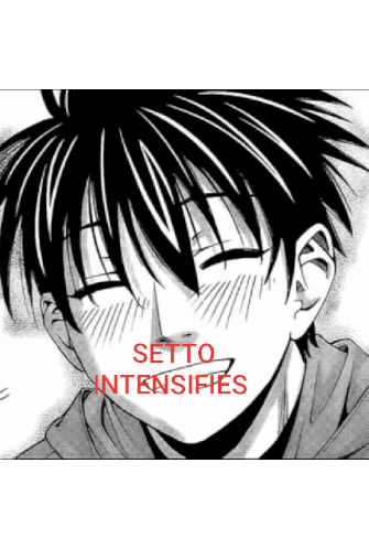 Manga boy Setto blushes intensely with 'SETTO INTENSIFIES' text, showing shyness or embarrassment.