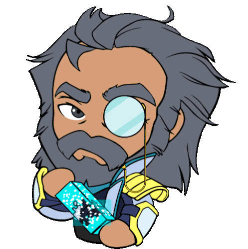 A chibi-style character from Shadow Fight 3, featuring a monocle and beard, looking thoughtful. Perfect for SF3VN fans.
