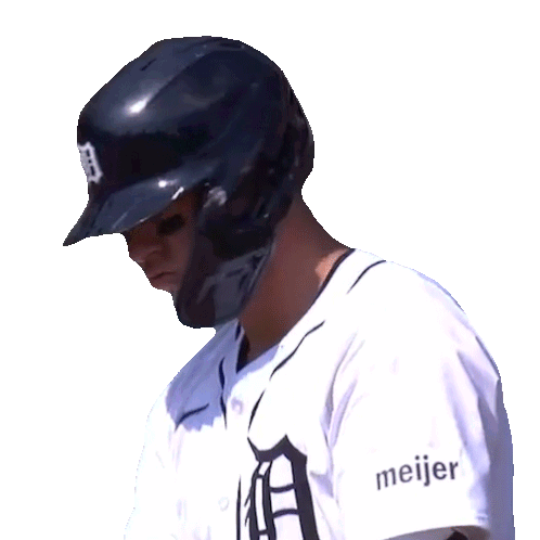 Spencer Torkelson, a Major League Baseball player, shakes his head in mild annoyance or frustration.
