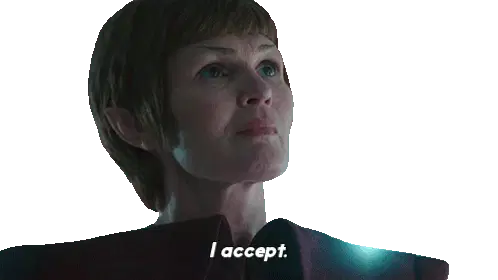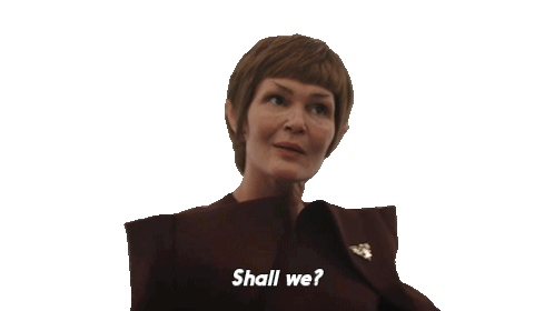 T'Rina, portrayed by Tara Rosling, asks 'Shall we?' with a subtle gesture in this Star Trek Discovery sticker.