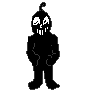 Shane from Everhood 2 performs a pixelated dab dance, captured in a striking black and white silhouette.