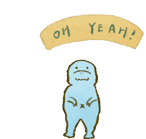 Shen_lanyao Shenlanyao character joyfully raises its arms, exclaiming "OH YEAH!" in an excited, happy dance.