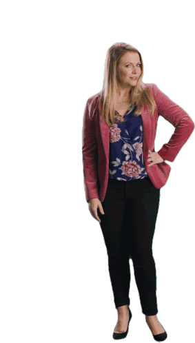 Melissa gestures for quiet, putting a finger to her lips in a shushing motion, then smiles playfully.