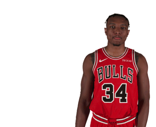 NBA player Wendell Carter Jr. of the Chicago Bulls makes a 'shhh' gesture, putting his finger to his lips to signal silence.