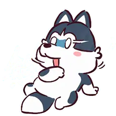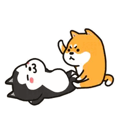 A playful Shiba Inu, Pungpung, pokes the belly of a happy husky-like dog. Cute cartoon dog interaction.