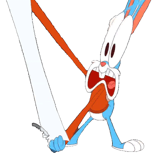 Buster Bunny, voiced by Eric Bauza, reacts with wide-eyed shock and an open mouth while holding a long scroll.