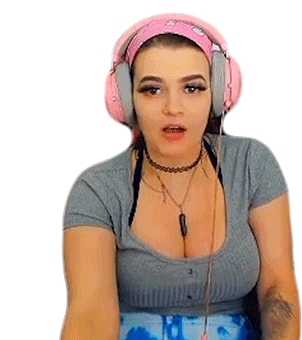 Delightfullydani, wearing pink headphones and a choker, reacts with a wide-eyed, shocked expression, then gives a thumbs up.