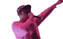 Ohgeesy from Shoreline Mafia energetically headbangs, dreadlocks flying, wearing a white and blue hoodie.