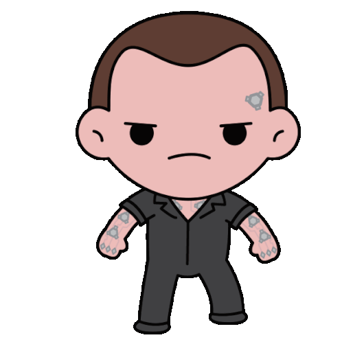 Zeke Stane, a chibi-style character, transforms from an angry stance to a powerful display of blue lightning from his hand.